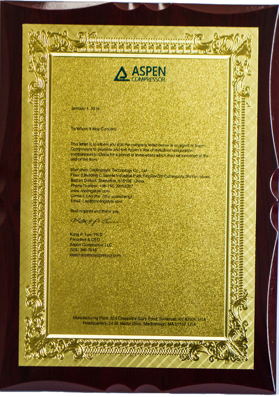 ASPEN壓縮機(jī)授權(quán)書